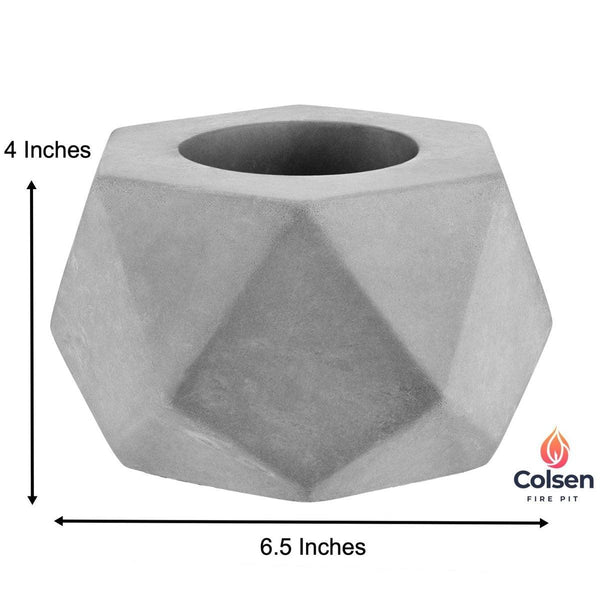 PRODUCT DETAILS Materials: High temperature resistance concrete Dimensions: (W) 6.5" x (H) 4.0" Rubbing alcohol fuel capacity: 5.0 oz (Not Included) Weight: 6.0 lbs